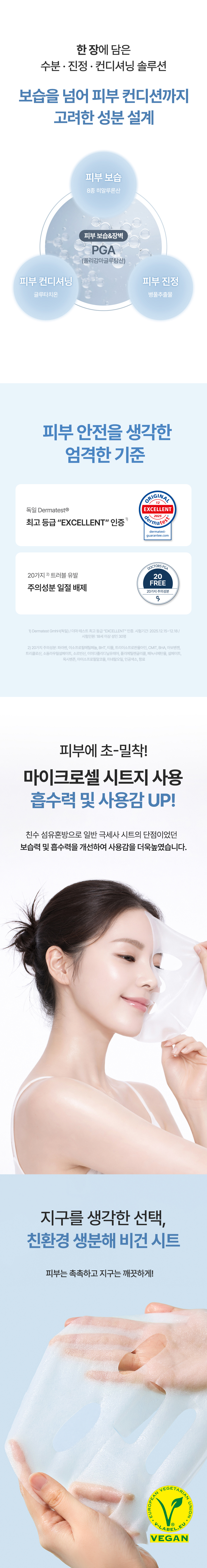 | 사용방법 | 1. 세안 후 토너로 피부 결을 정돈해줍니다. 2. 파우치를 개봉한 다음 시트를 꺼내어 눈, 코 부분부터 맞추어 얼굴 전체에 고르게 밀착시켜줍니다. 3. 10~20분 후 떼어내고 피부 위에 남은 액은 가볍게 두드려 흡수시켜줍니다. |