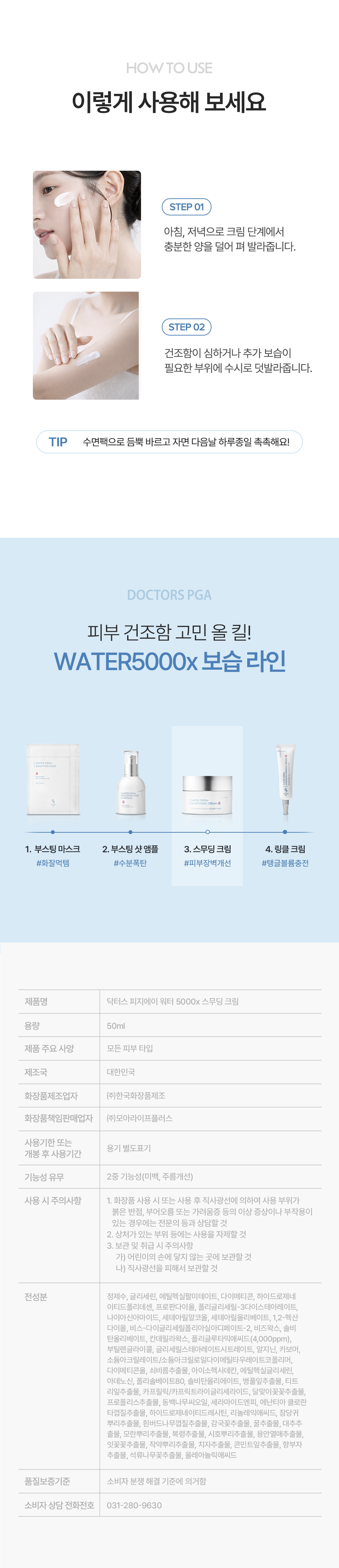 | 사용방법 | 집중 관리가 필요한 얼굴, 팔, 다리 등의 부위에 충분한 양을 덜어 피부결을 따라 부드럽게 펴 발라줍니다. 특히 건조한 부위는 수시로 덧발라주면 좋습니다. |